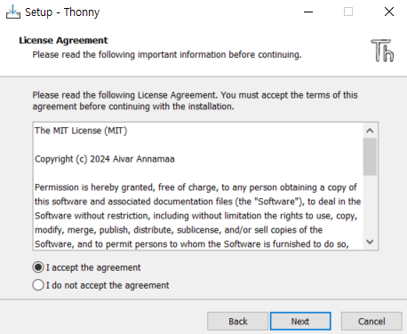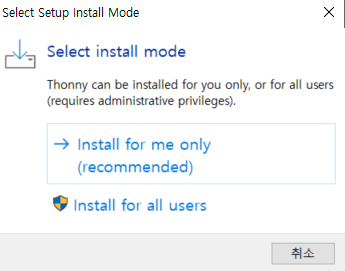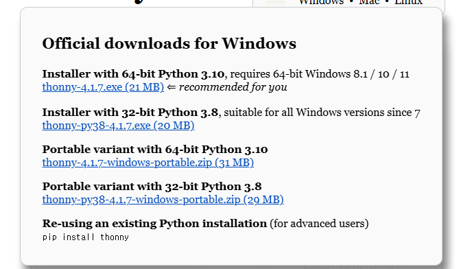 - Windows용 설치 파일(thonny-setup.exe) 다운로드