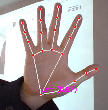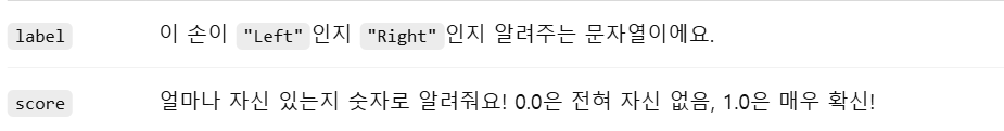 예를 들어 / Right (0.97) ← 오른손이고, 97% 확신, Left (0.91) ← 왼손이고, 91% 확신