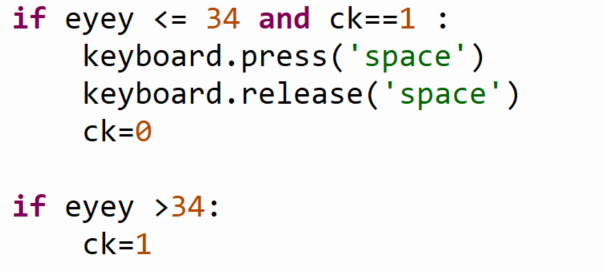 5. 조건문으로 랜드마크 2 눈의 좌표가 흰색선을 넘으면 "space" 버튼을 누르게 만들기