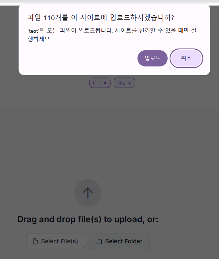 - 폴더 선택: 폴더째로 업로드