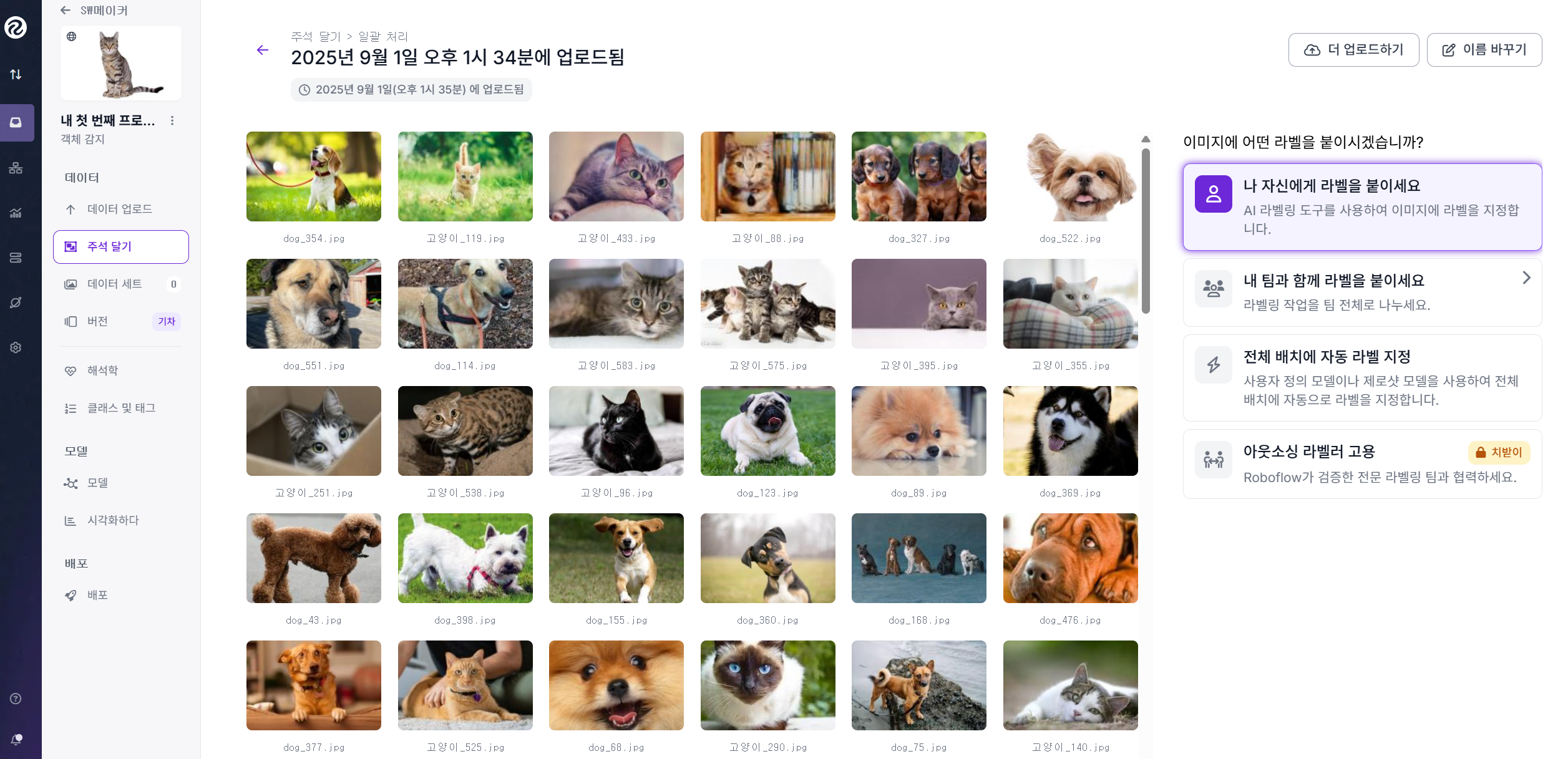 - 상단에 “2025년 9월 1일 오후 1시 34분에 업로드됨” → 이번에 올린 이미지 묶음(배치)의 시간 기록