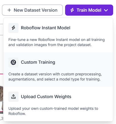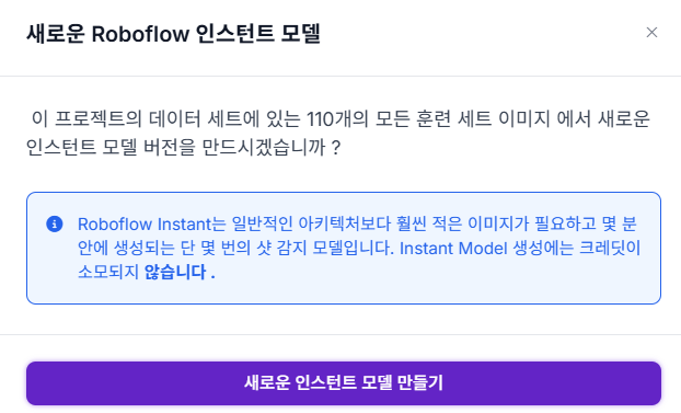 - Roboflow가 제공하는 기본 학습 환경에서 업로드한 데이터셋을 바로 학습