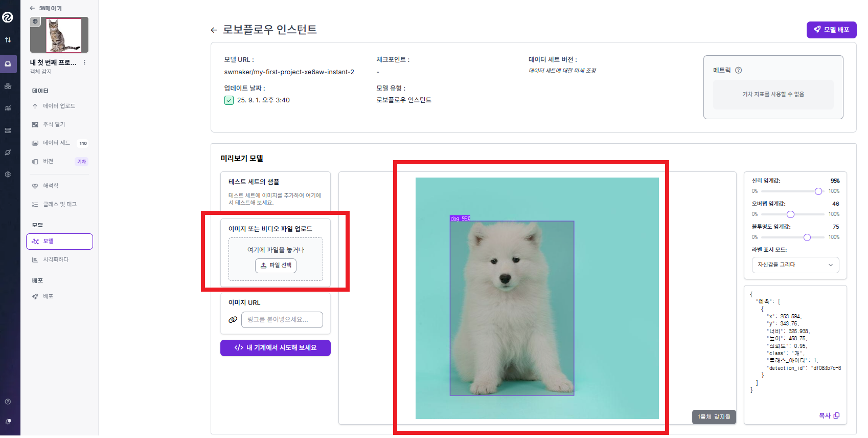 - 모델 종류(YOLO, Faster R-CNN 등) 선택 가능