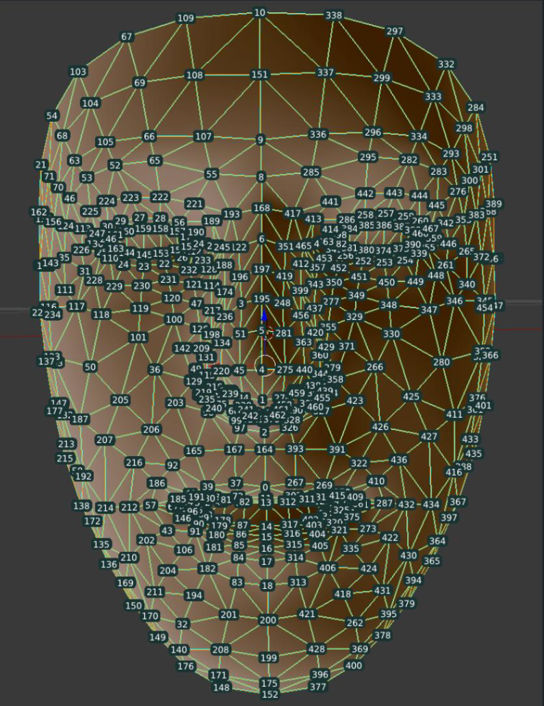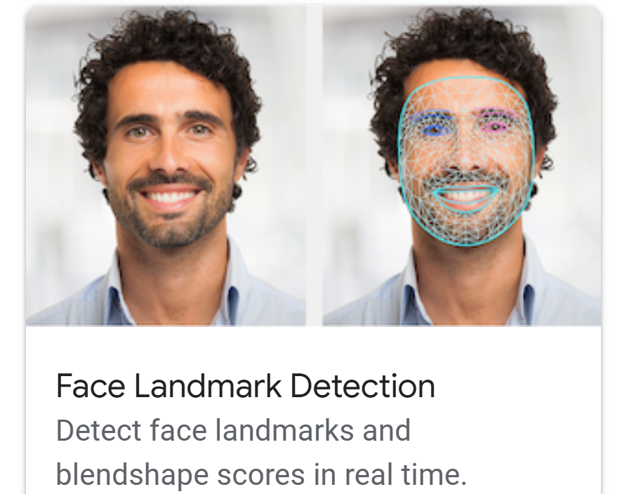 - Face Mesh : 얼굴의 468개 랜드마크를 감지해 3D 형태로 분석