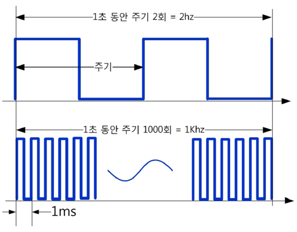 - 1초 동안 HIGH와 LOW가 반복되는 횟수를 주파수라고 합니다.