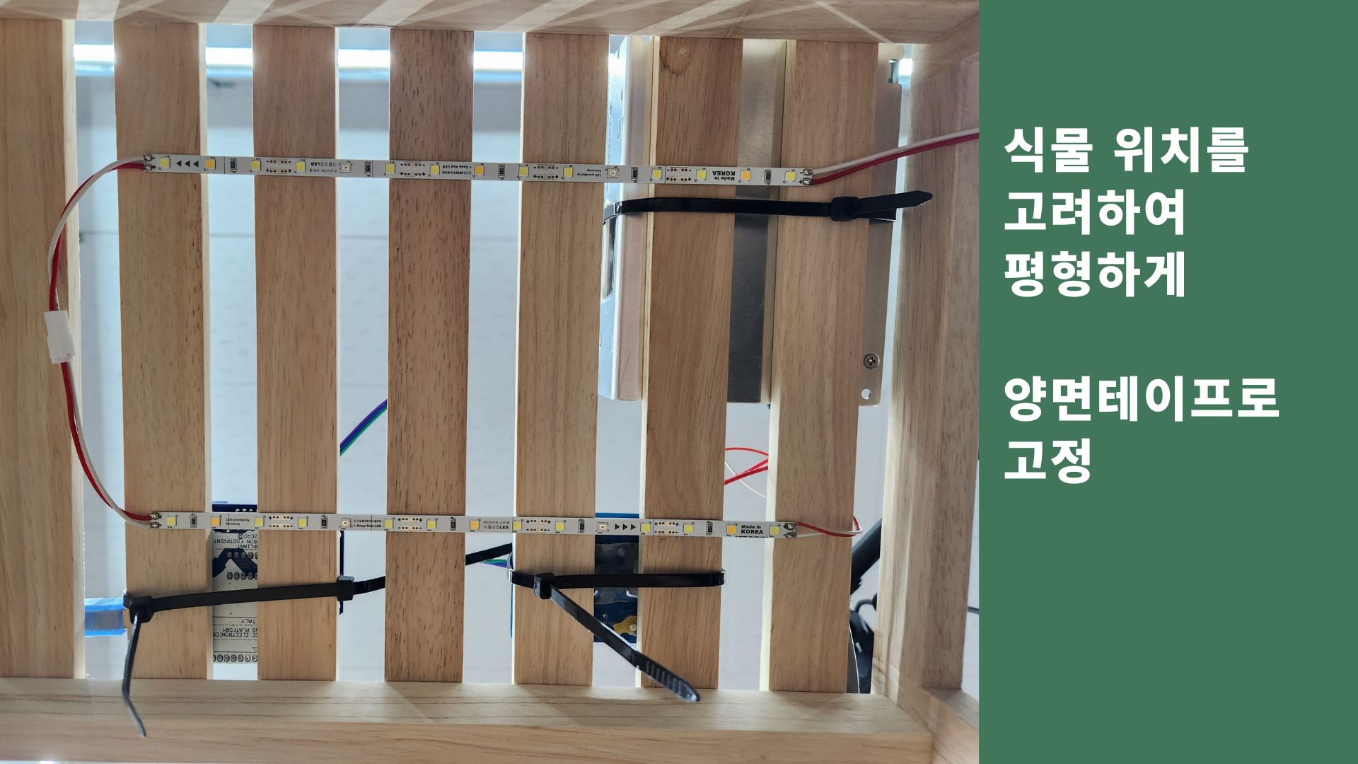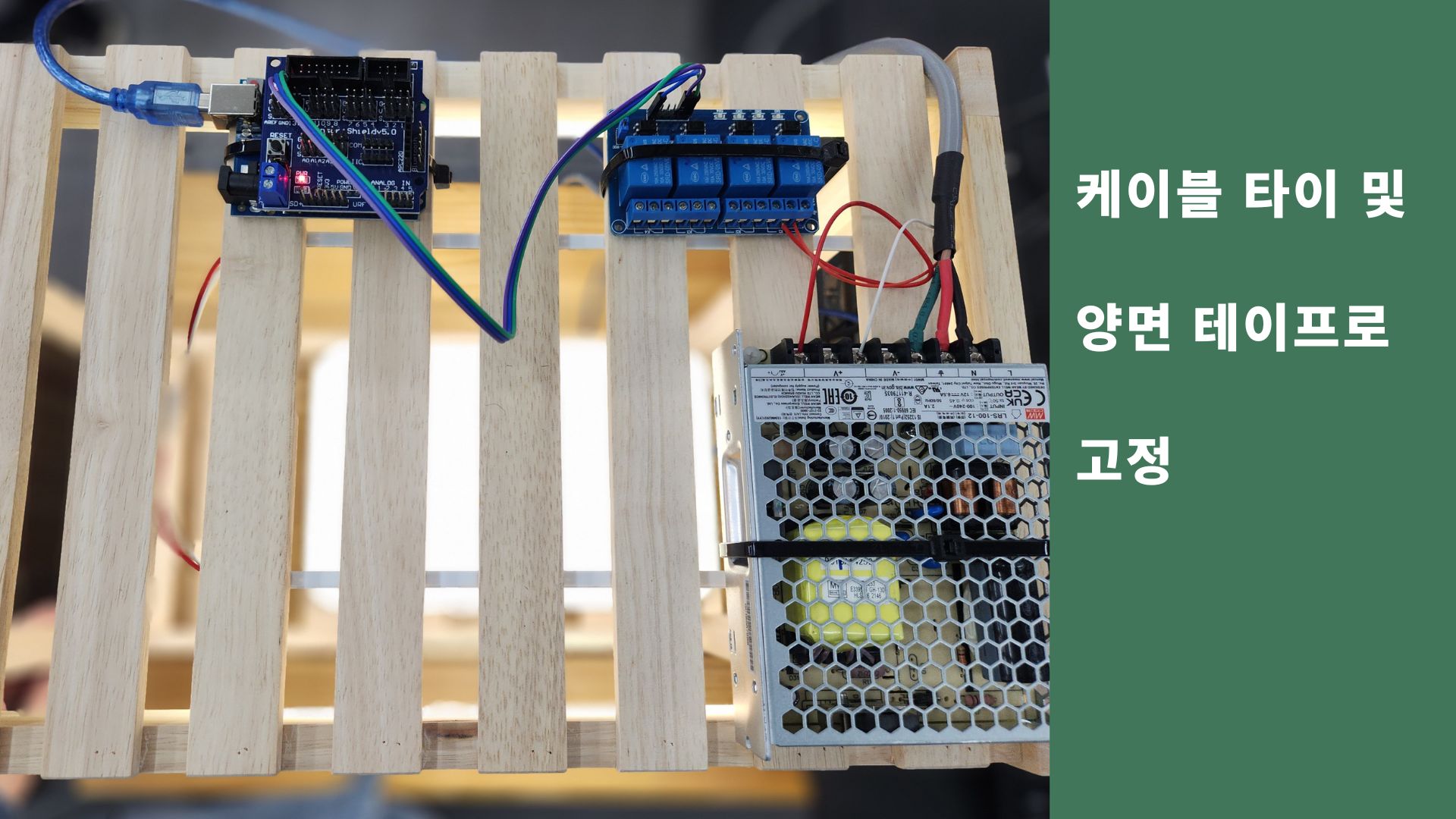 케이블 타이 및 양면테이프로 앞으로 구성할 센서등을 고려하여 위치 고정하기