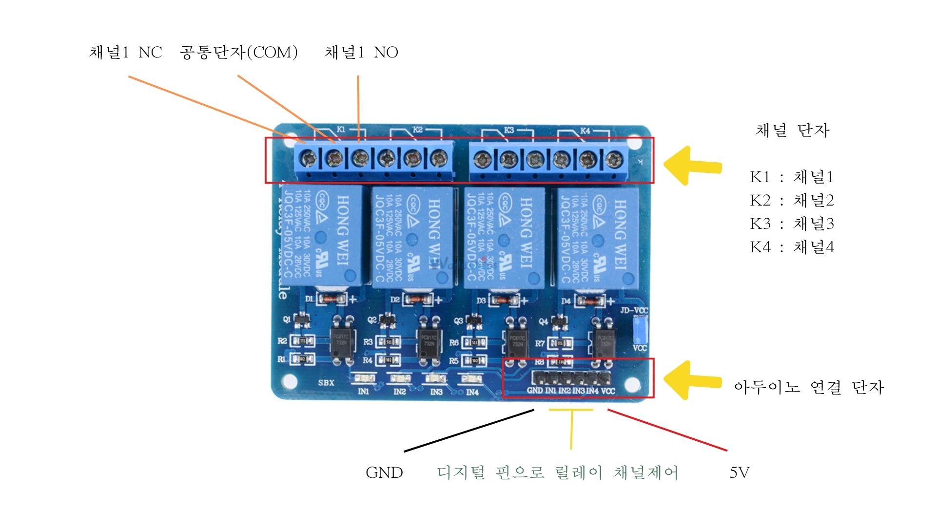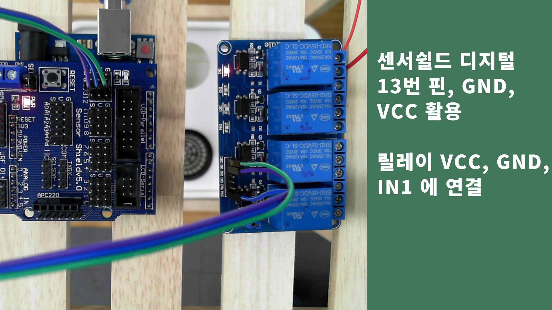 - 아두이노 우노보드, 아두이노 센서쉴드, 릴레이 4채널 모듈