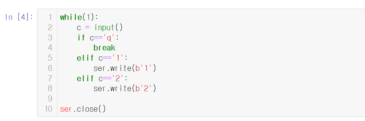 3. serial.Serial(아두이노 포트 와 통신속도 설정)