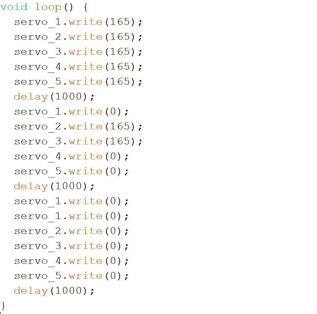 # 여기서 delay 5초를 준이유는 아두이노 리셋 버튼을 누르고 손가락이 전부 펴졌을때 전원을 꺼서 탄성을 유지하기