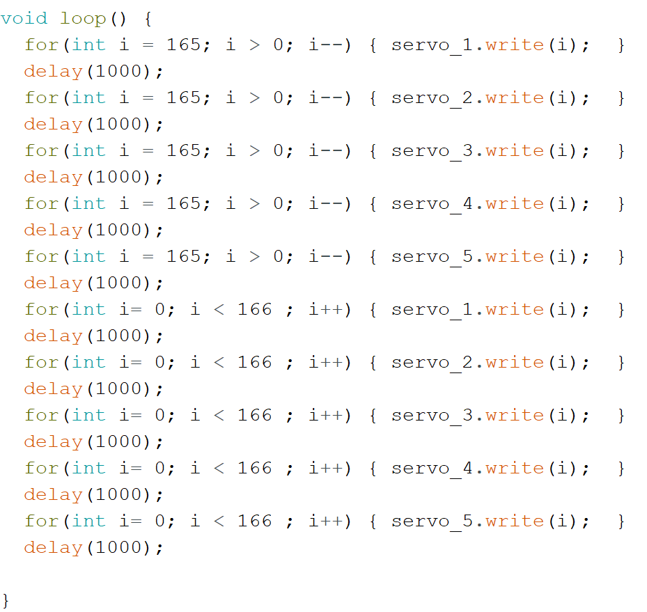 for(int i= 0; i < 166 ; i++) { servo_5.write(i); }