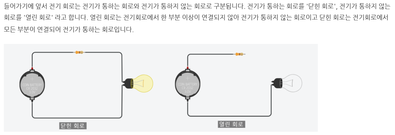 - 스위치를 통해 LED를 켜거나 전원을 연결하여 모터를 제어하는 등의 활용을 위해.