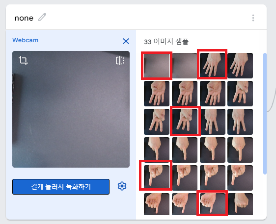 - 만약 데이터 사진중에 흔들리거나 잘못된 사진이 있을때는 삭제해 주어야 인공지능 인식률을 높일 수 있다.