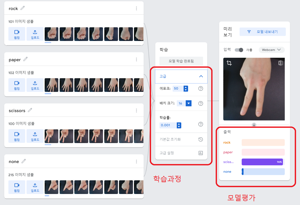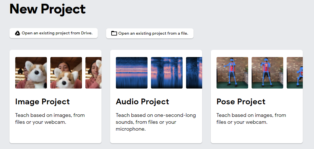티처블머신은 사용자가 웹캠으로 사물의 이미지나 자세를 촬영하거나, 마이크로 소리를 입력하여 머신러닝 모델을