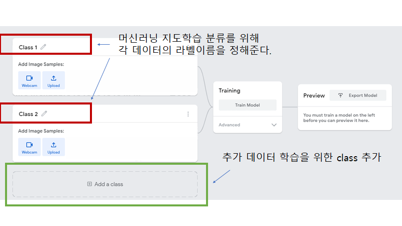 - 각 Class 에는 머신러닝 지도학습을 위한 데이터의 라벨이름을 정해준다.
