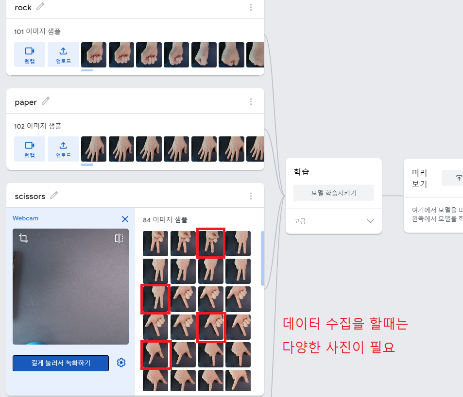 - 가위, 바위, 보 데이터 보다 더 많은 데이터를 수집하도록 하자 !