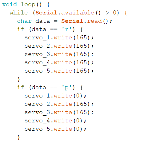 servo_1.write(165); // 핸드이노 손펴있는 보자기 출력