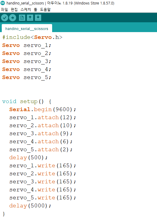 servo_1.write(0); // 핸드이노 가위 출력