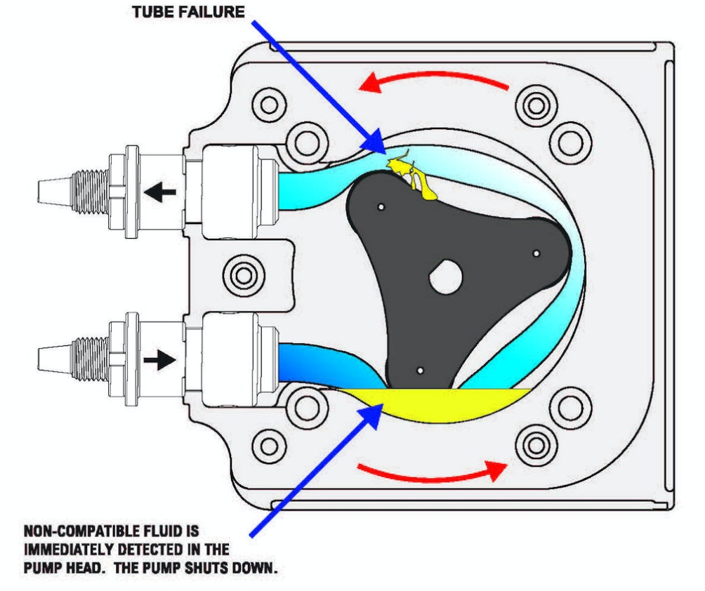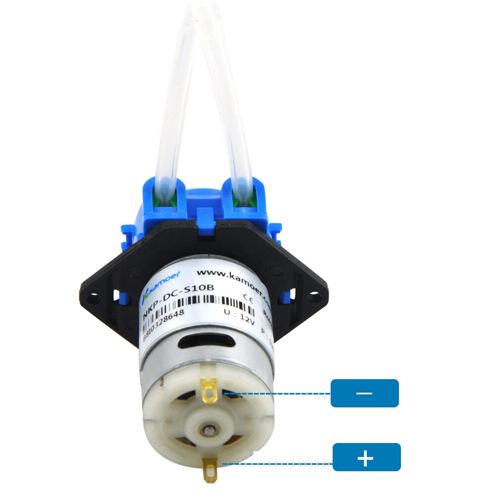 페리스탈틱 펌프는 유체를 유체를 감싸고 있는 실리콘 관을 압축하여 움직이는 방식이며, 흡입과 토출이 분리되어