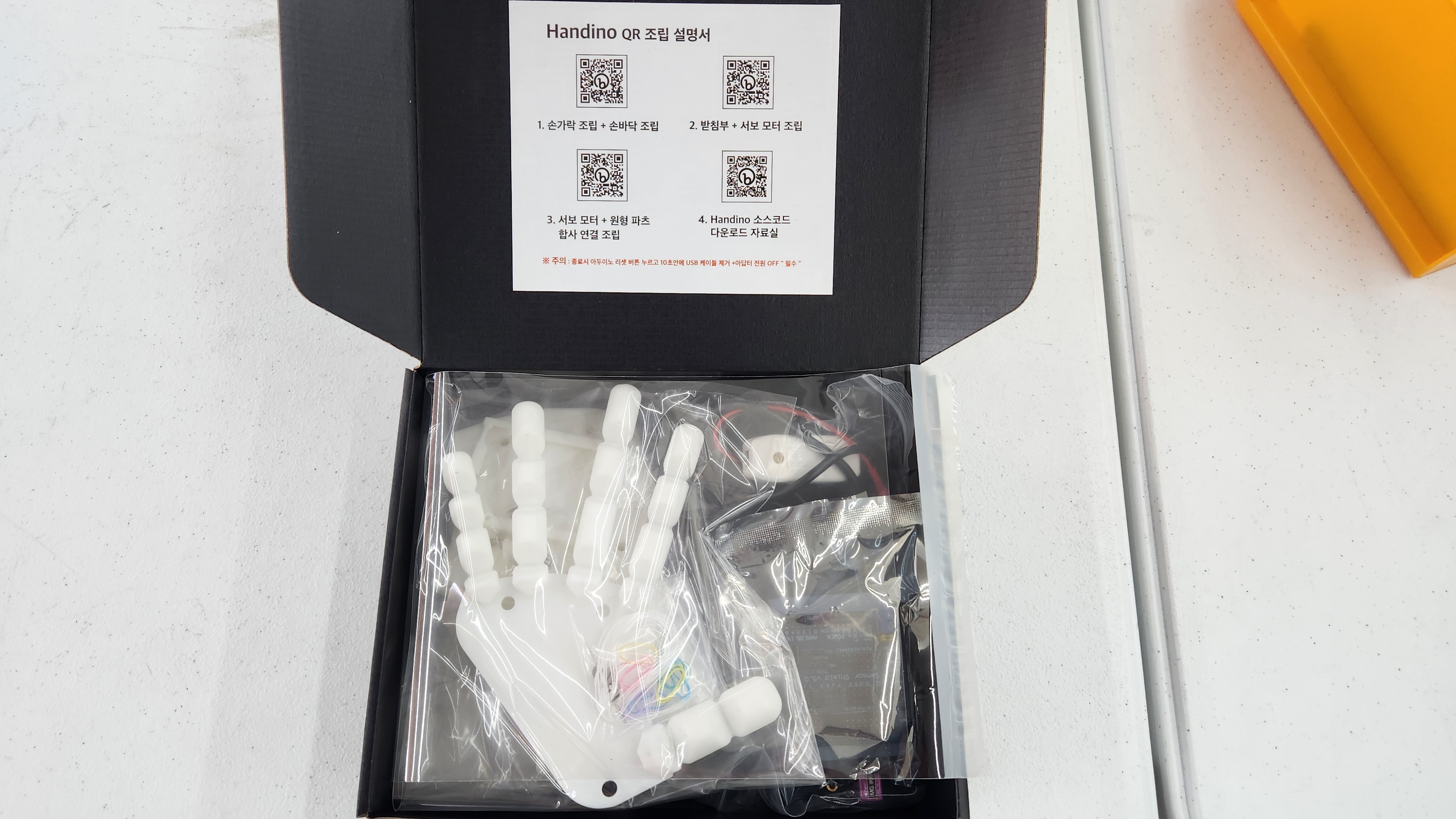 - QR 코드를 통해 손의 파트별로 조립이 가능하며 부속품 하나하나 신경을 쓰였다는 것이 느껴 집니다.