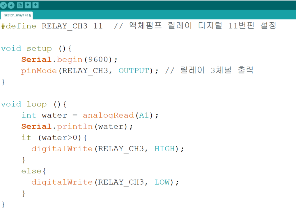 pinMode(RELAY_CH3, OUTPUT); // 액체펌프