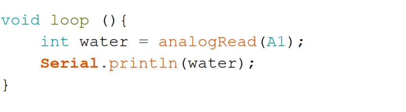 물이 없을때는 아날로그 값이 " 0 " 으로 출력 될 것이며, 물의 깊이에 따라 아날로그 값이 커지며 출력이 될것이다.