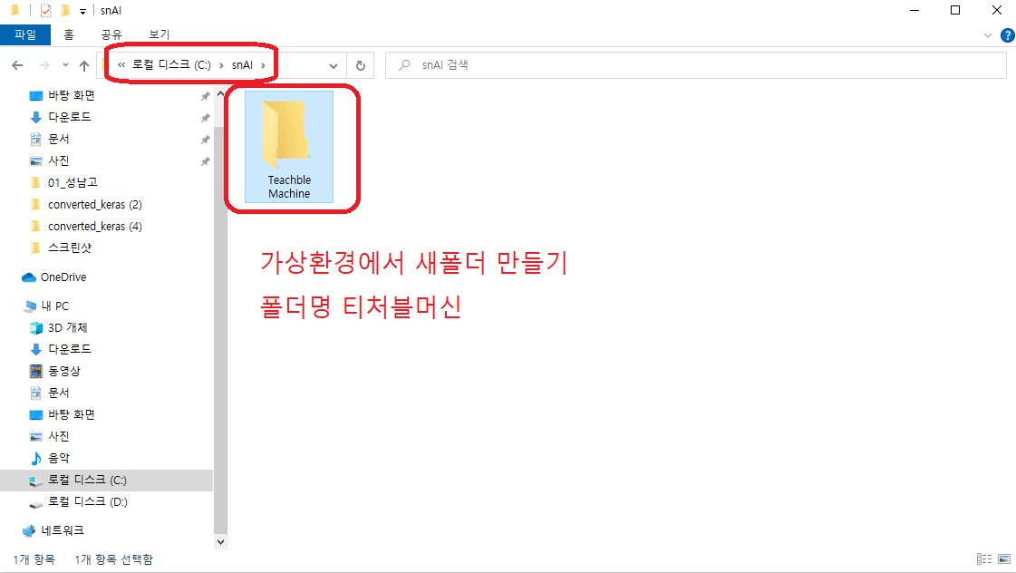 - 새로 생성한 Teachable Machine 폴더로 이동하기