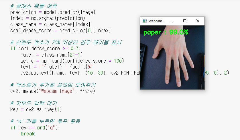 티처블머신(Teachable Machine) 모델 파이썬 openCV로 불러오기