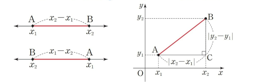 - 수직선에서 A, B 두점사이의 거리