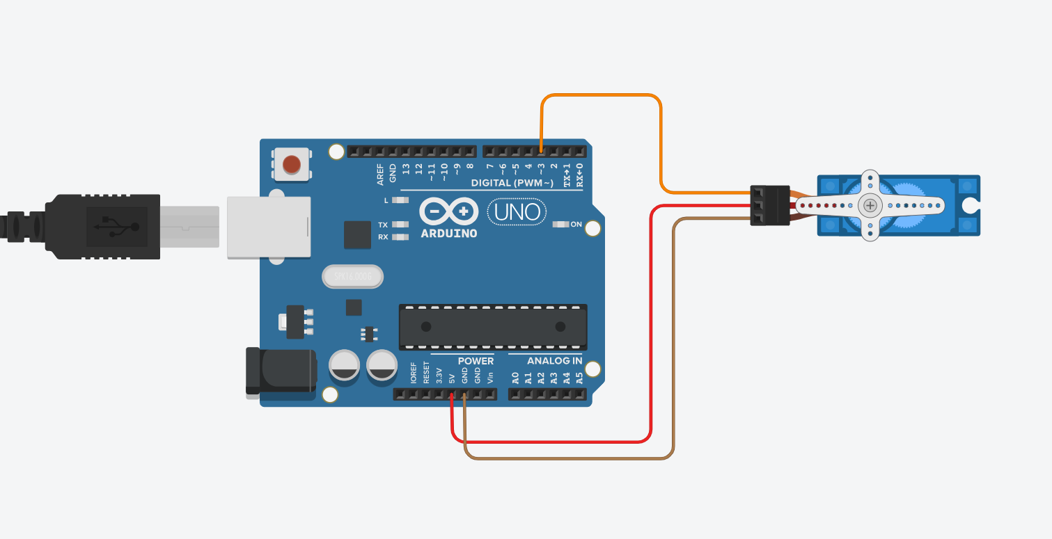 다. 서보모터의 신호 핀을 아두이노의 디지털 핀에 연결합니다. (예시 : 3번 핀에 연결)