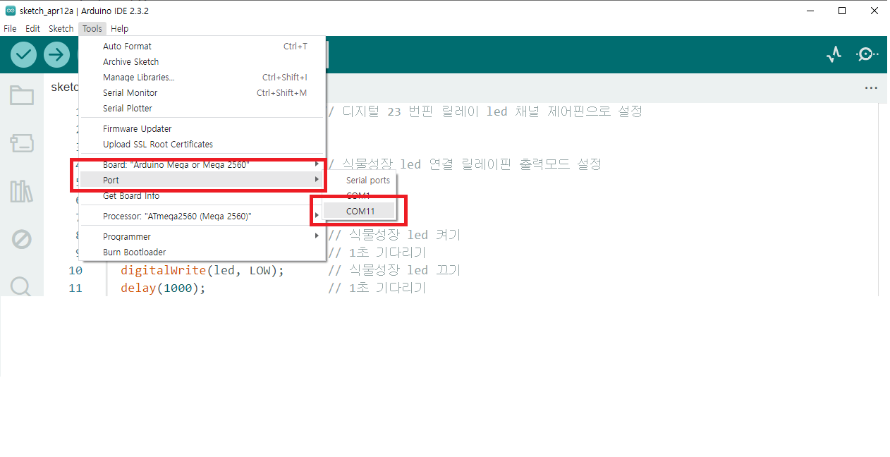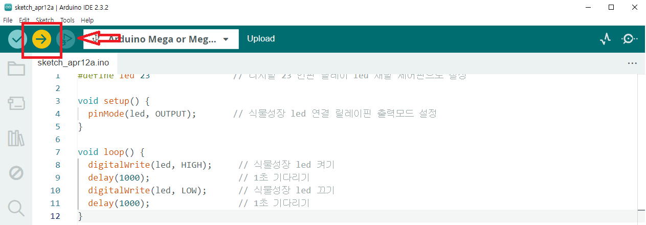 pinMode(led, OUTPUT); // 식물성장 led 연결 릴레이핀 출력모드 설정