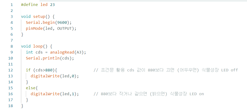 digitalWrite(led, HIGH); // 식물성장 led 켜기