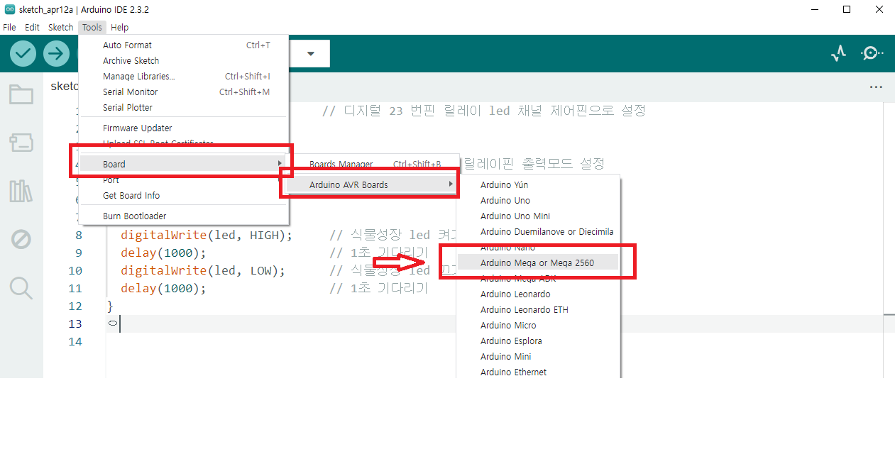 #define led 23 // 디지털 23 번핀 릴레이 led 채널 제어핀으로 설정