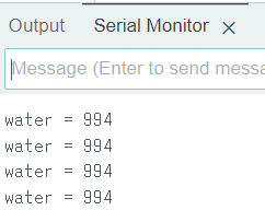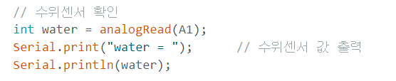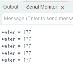수위 센서 값을 읽어서 변수 water에 저장하고 시리얼 모니터로 출력하여