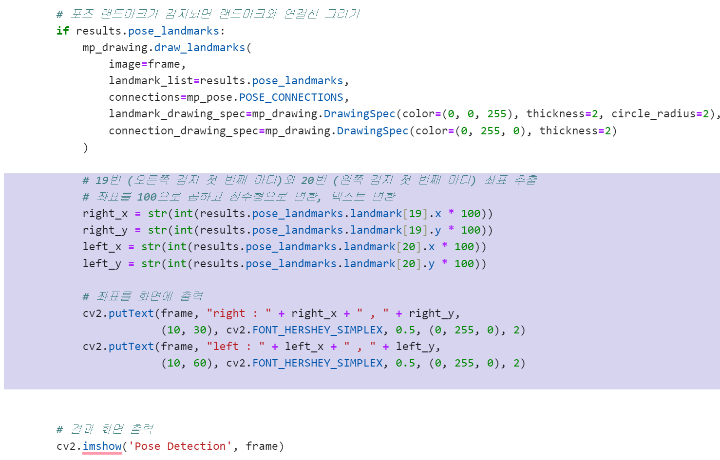 # 프레임을 포즈 모델에 전달하여 포즈를 처리